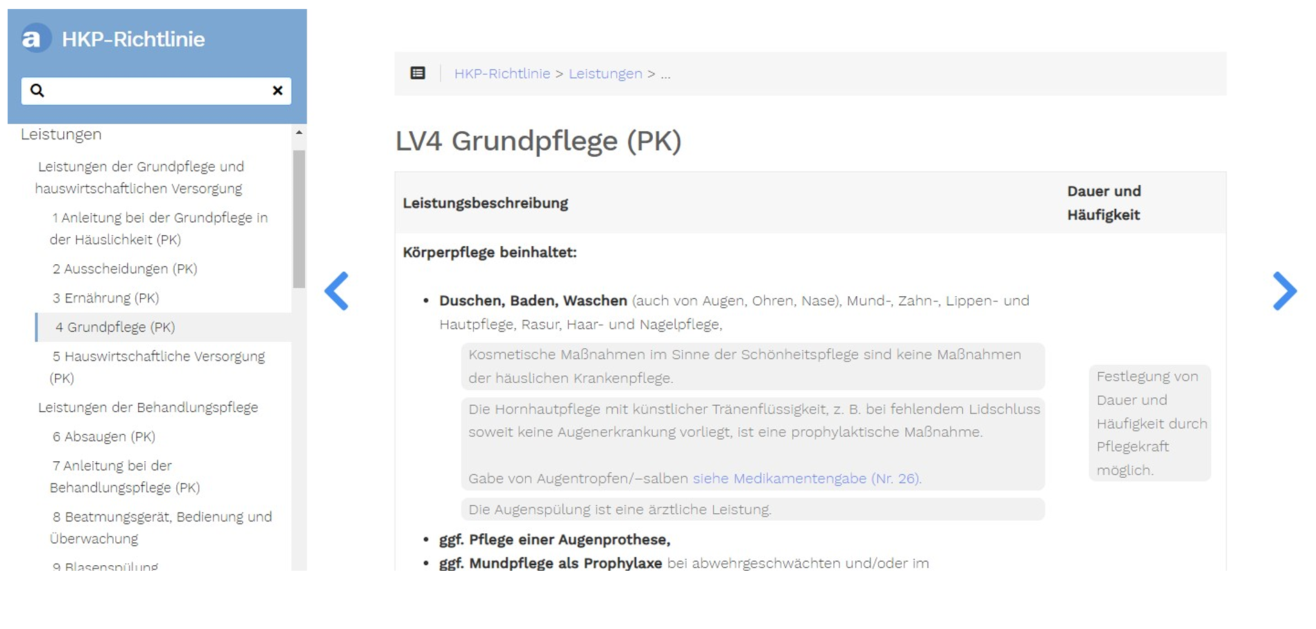 In atacama | HKP wird dieses Vorgehen bereits umgesetzt. Bei den im Leistungsverzeichnis der Richtlinie entsprechend gekennzeichneten Leistungen (s. Bild) werden bei dem Schritt „Berechnen & Prüfen“ der HKP-Verordnung die vom Pflegedienst beantragten Häufigkeiten den vom Arzt verordneten Häufigkeiten vorgezogen.