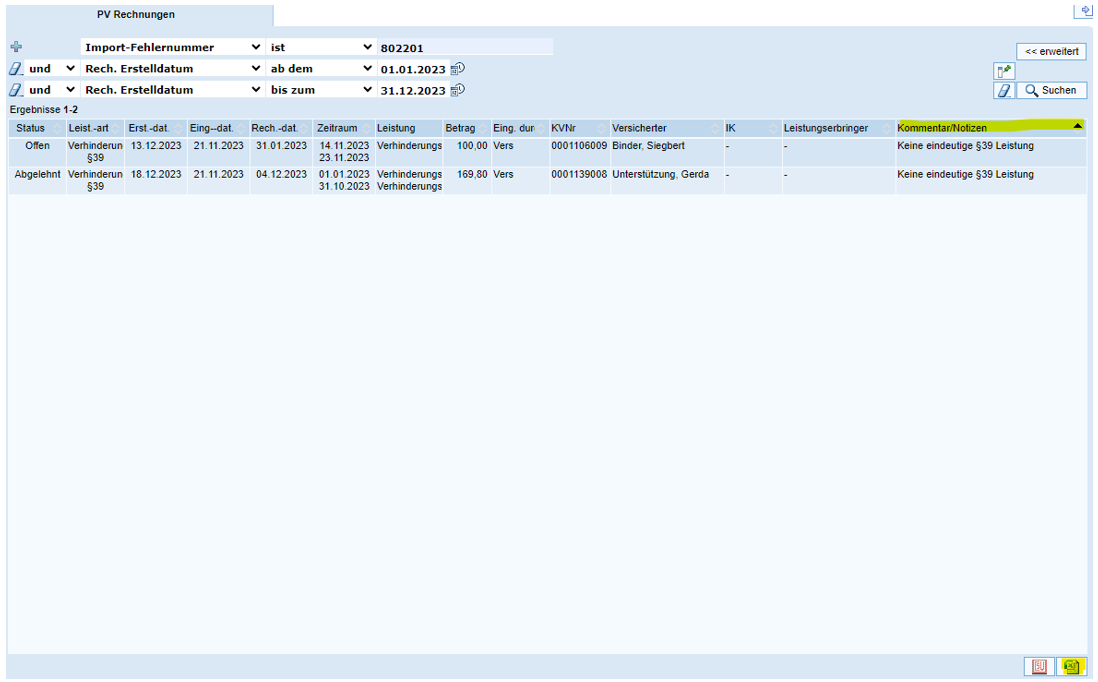 - gezielte Abfrage der Rechnungen, um bspw. falsch eingereichte Rechnungen ausfindig zu machen