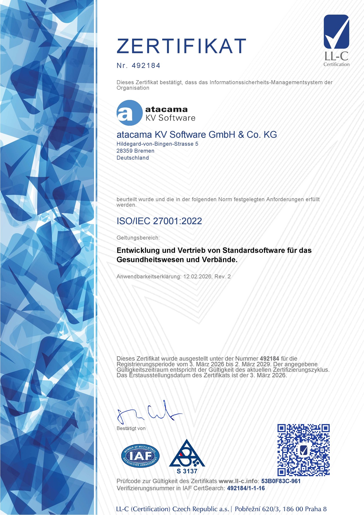 Die GKV Suite wurde im Rahmen eines Audits von der BITMARCK erfolgreich zertifiziert. Mit der Zertifizierung bestätigt BITMARCK die Interoperabilität und Integration der atacama | GKV Suite, im Zusammenspiel mit BITMARCK_21c|ng, einem Kernsystem für gesetzliche Krankenkassen.